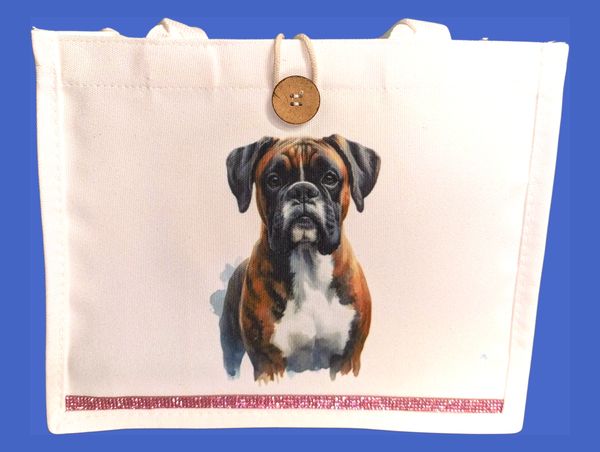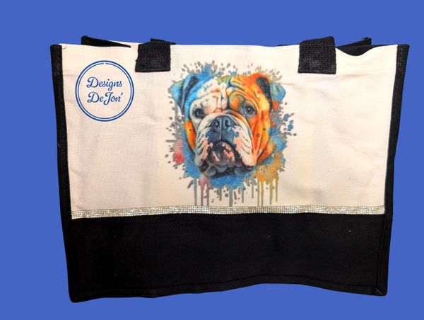 Spoil yourself with new hand bag tote from Designs De Jon. With this small canvas handbag tote, you will go out in style. Showing off your favorite breed with a little rhinestone bling.